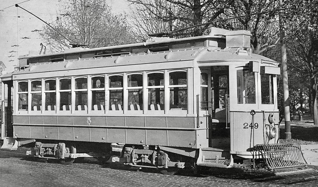 In 1904 from J G Brill Philadelphia an order was done for a Brill patent “grooveless post” semi-convertible car on Brill 27G bogies. The car was intended to be used on the “Marginal” (line 1) and got four Siemens motors because of the 10% incline at the East side of the Jardim do Infante. The car had seats for 32 and open platforms. The original number was 90, since 1907 it was 190 and about 1913 it became 191.